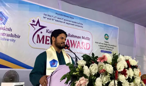 জাহিদুল ইসলাম বলেন, ‘আমরা সাধারণত দেখি অ্যাওয়ার্ড অনুষ্ঠানের আয়োজন বিশ্ববিদ্যালয় প্রশাসন করে থাকে। ছাত্রশিবির বিগত সময়েও এ ধরনের আয়োজন করেছে, মাঝে অল্প করেছে। যারা অ্যাওয়ার্ডের জন্য মনোনীত হয়েছেন আমি আপনাদের সবাইকে অভিনন্দন জানাচ্ছি। আপনারা মেধা দিয়ে এখানে ভর্তি হয়েছেন। তারপর আবার বিশ্ববিদ্যালয়েও সুন্দর রেজাল্ট করেছেন। এ অর্জনের জন্য আপনাদের অনেক কষ্ট করতে হয়েছে। জগন্নাথ বিশ্ববিদ্যালয়ে হল নেই। আপনাদের অনেক কষ্ট করতে হয়। তাছাড়া অনেক অবকাঠামোগত সুবিধাও নেই।’