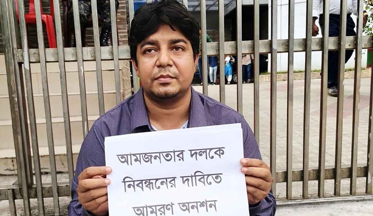 নতুন রাজনৈতিক দল হিসেবে আমজনতা দল নির্বাচন কমিশনের (ইসি) নিবন্ধন না পাওয়ায় দলটির সদস্যসচিব মো. তারেক রহমান আমরণ অনশনের ডাক দিয়েছেন। মঙ্গলবার (৪ নভেম্বর) বিকেল ৪টার দিকে আগারগাঁওয়ে নির্বাচন কমিশনের প্রধান ফটকের সামনে বসে আমরণ অনশনের ডাক দেন তিনি।
