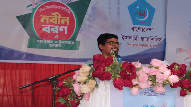 বাংলাদেশ ইসলামী ছাত্রশিবির, দিনাজপুর সরকারি কলেজ শাখার উদ্যোগে ২০২৪-২৫ শিক্ষাবর্ষের নবীন শিক্ষার্থীদের “নবীনবরণ ও ক্যারিয়ার গাইডলাইন প্রোগ্রাম ২০২৫” অনুষ্ঠিত হয়েছে। সোমবার (৪ নভেম্বর) কলেজের মুক্তমঞ্চ প্রাঙ্গণে এ অনুষ্ঠানের আয়োজন করা হয়। নবীন শিক্ষার্থীদের স্বাগত জানাতে পুরো ক্যাম্পাসজুড়ে উচ্ছ্বাসের পরিবেশ তৈরি হয়।