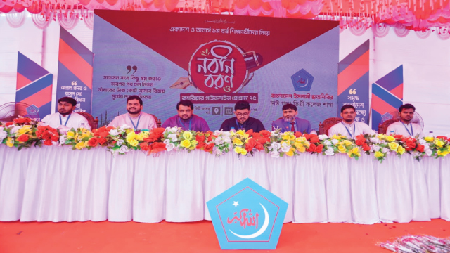 বাংলাদেশ ইসলামী ছাত্রশিবির নিউ গভঃ ডিগ্রী কলেজ শাখার উদ্যোগে ২০২৪-২৫ শিক্ষাবর্ষের নবাগত শিক্ষার্থীদের নিয়ে নবীন বরণ অনুষ্ঠান ও ক্যারিয়ার গাইড লাইন প্রোগ্রাম অনুষ্ঠিত হয়েছে। শনিবার (২২ নভেম্বর ২০২৫) সকালে কলেজ মাঠ প্রাঙ্গণে আয়োজিত এ অনুষ্ঠানে ইন্টারমিডিয়েট ১ম বর্ষ ও অনার্স প্রথম বর্ষ ২০২৪-২৫ শিক্ষাবর্ষের শিক্ষার্থীদের বরণ করা হয়।