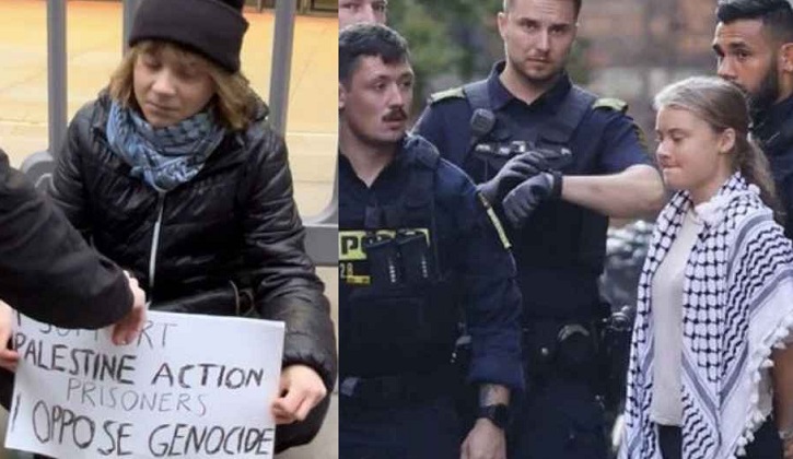যুক্তরাজ্যভিত্তিক ক্যাম্পেইন গ্রুপ ‘ডিফেন্ড আওয়ার জুরিস’ জানিয়েছে, ব্রিটেনের সন্ত্রাসবিরোধী আইন অনুযায়ী থুনবার্গকে গ্রেফতার করা হয়েছে। অভিযোগ অনুযায়ী, তিনি একটি প্ল্যাকার্ড বহন করছিলেন, যেখানে প্যালেস্টাইন অ্যাকশনের সঙ্গে সংশ্লিষ্ট বন্দিদের প্রতি সমর্থনের বার্তা ছিল।